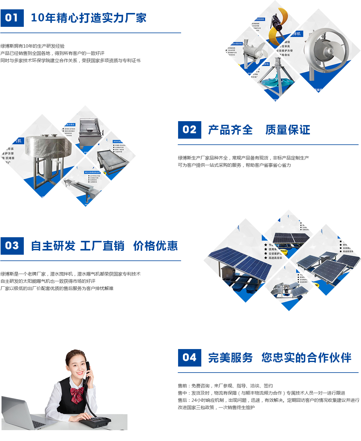 江蘇綠博斯環(huán)保設備有限公司位于江蘇省南京市六合區(qū),公司主營環(huán)保產(chǎn)品有:太陽能曝氣機、混合攪拌機系列:QJB潛水攪拌機﹨QJB沖壓式攪拌機﹨QJB低速推流攪拌機﹨雙曲面攪拌機﹨槳式攪拌機﹨框式攪拌機﹨污泥回流泵﹨浮筒攪拌機潛水曝氣系列:射流曝氣機﹨離心曝氣機﹨深水曝氣機﹨浮筒攪拌曝氣機攔污輸送系列:回轉(zhuǎn)式機械格柵﹨無軸螺旋輸送機﹨螺旋壓榨機﹨沉砂池除砂機﹨砂水分離器刮泥機系列:周邊傳動﹨中心傳動行車式﹨虹吸式等刮吸泥機水處理設備:潷水器﹨地埋式﹨管式靜態(tài)混合器﹨閘門潛水泵系列:ASWQAF型潛污泵太陽能曝氣機固液分離機等。歡迎各界朋友蒞臨參觀、指導和業(yè)務洽談。